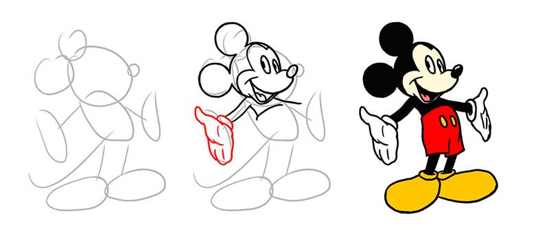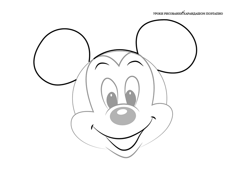 ![Нарисовать Микки Мауса поэтапно карандашом]()