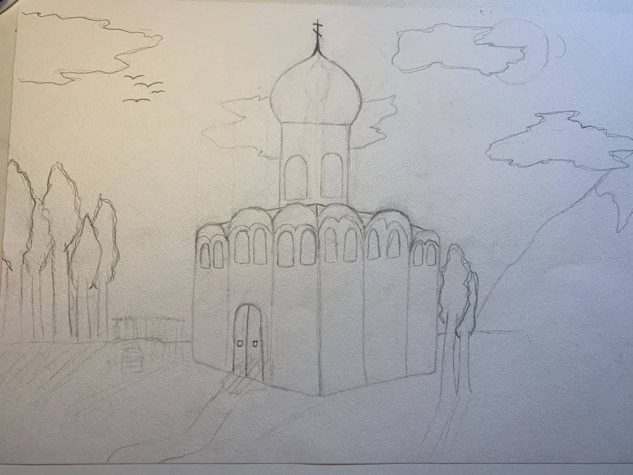Эскиз церкви карандашом для начинающих