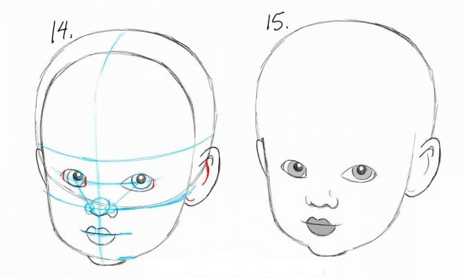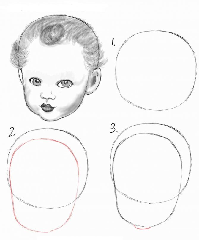 Поэтапное рисование лица младенца