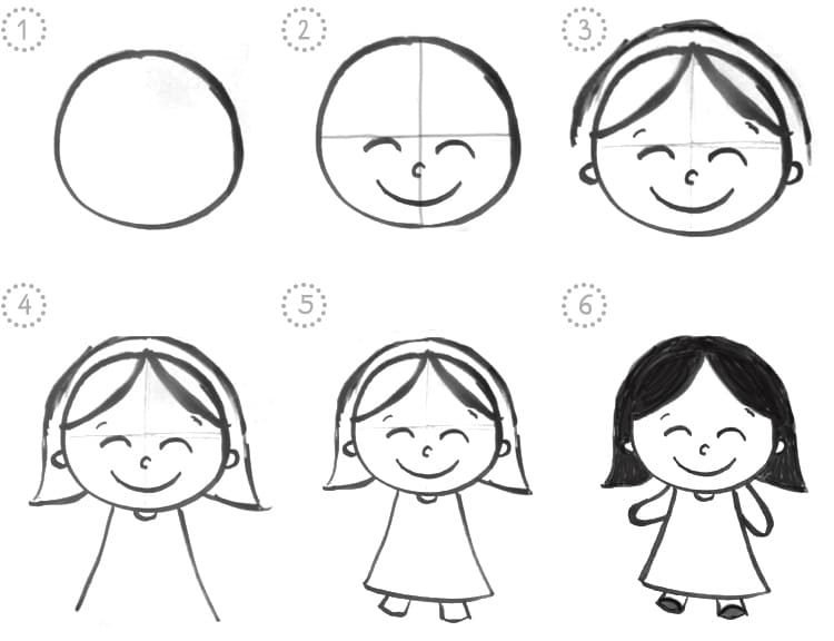 Пошаговое рисование девочки для детей