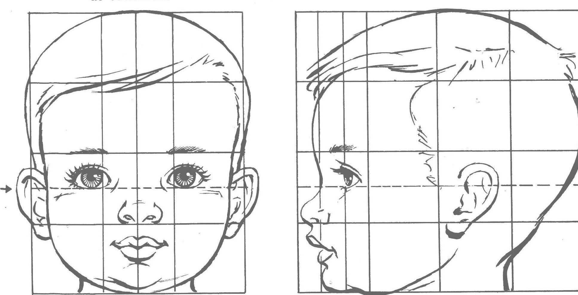 Пропорции лица ребенка для рисования для начинающих