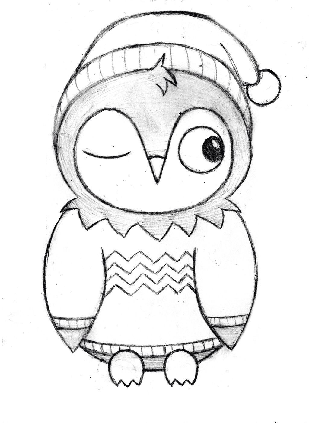 Совушка карандашом для срисовки