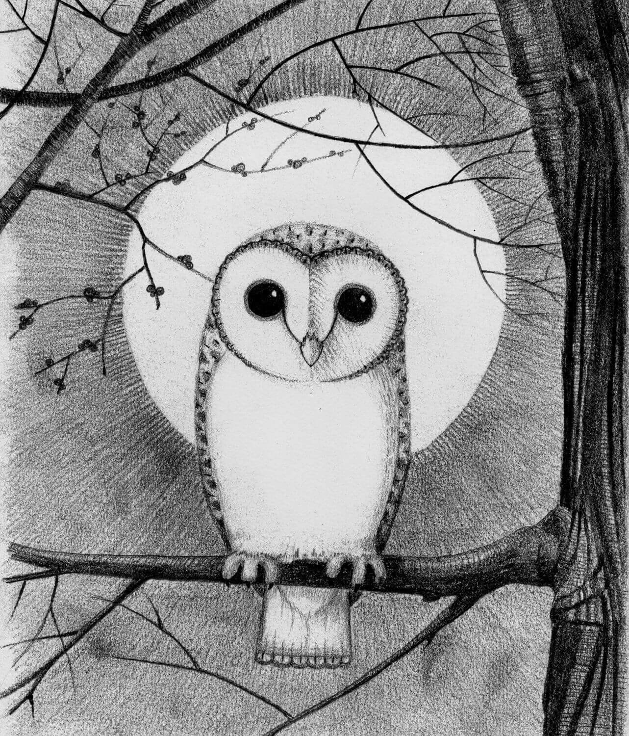 Филин рисунок карандашом