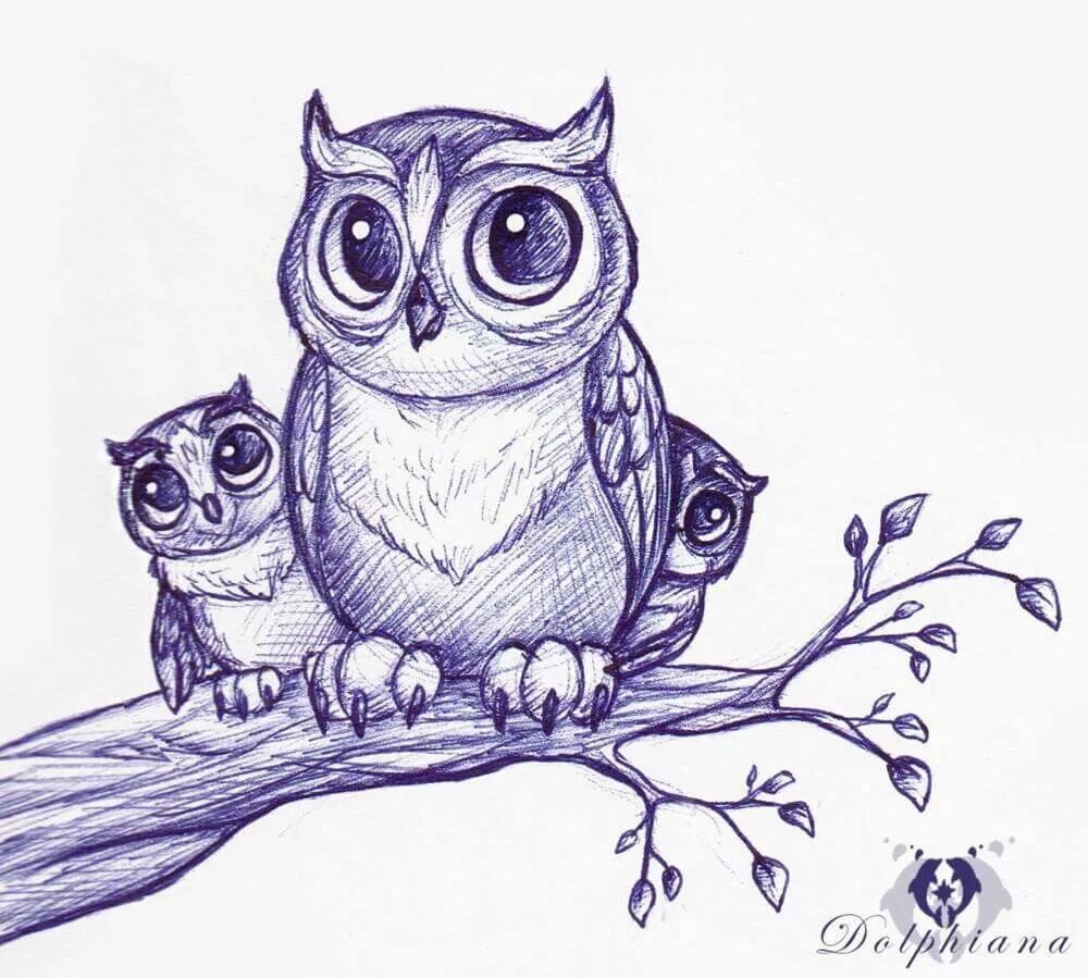 ![Совы карандашом прикольные]()