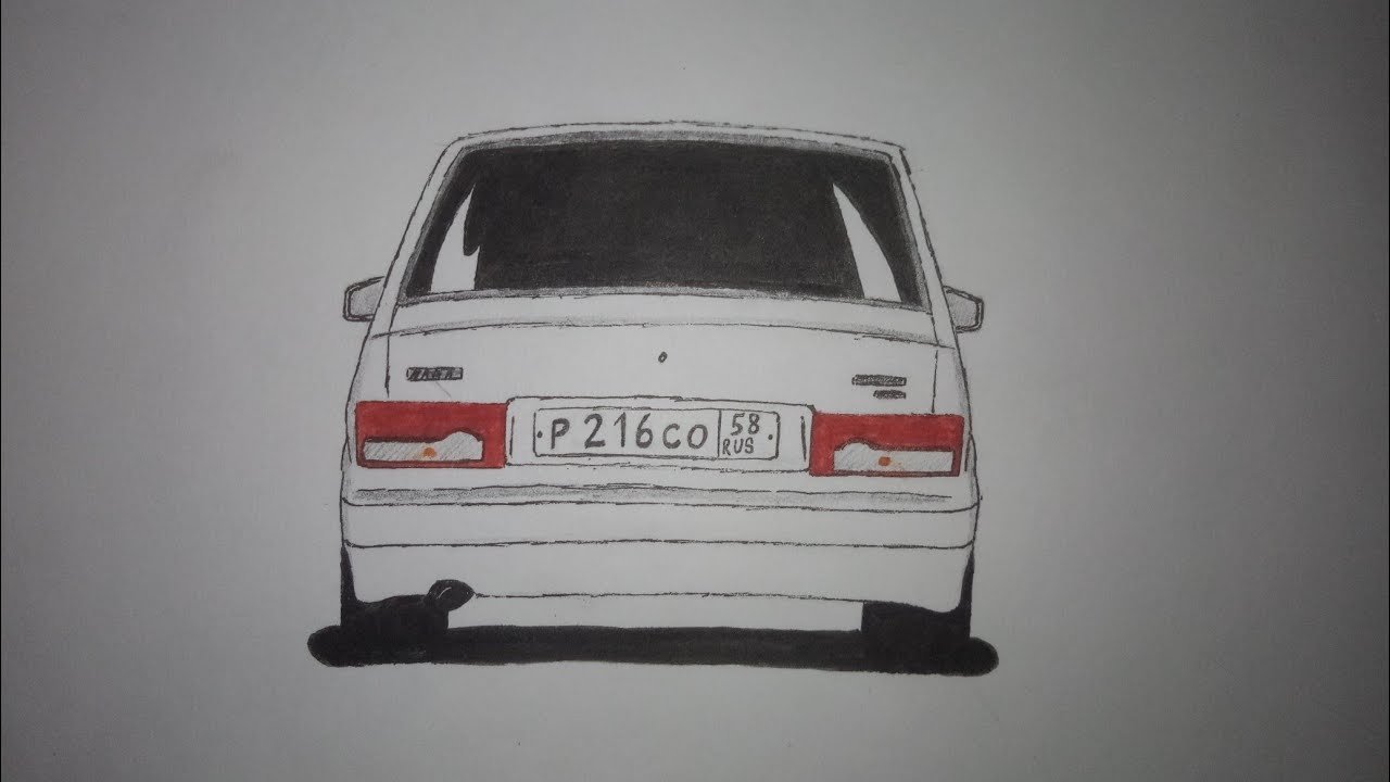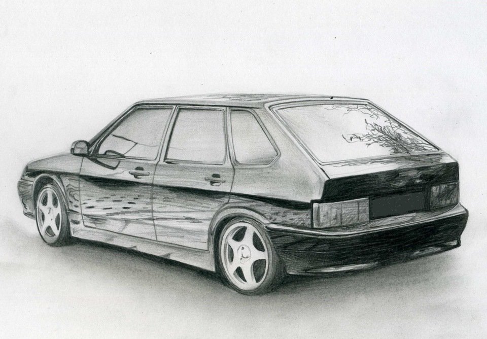 ![Рисунок ВАЗ 2109 карандашом спереди]()