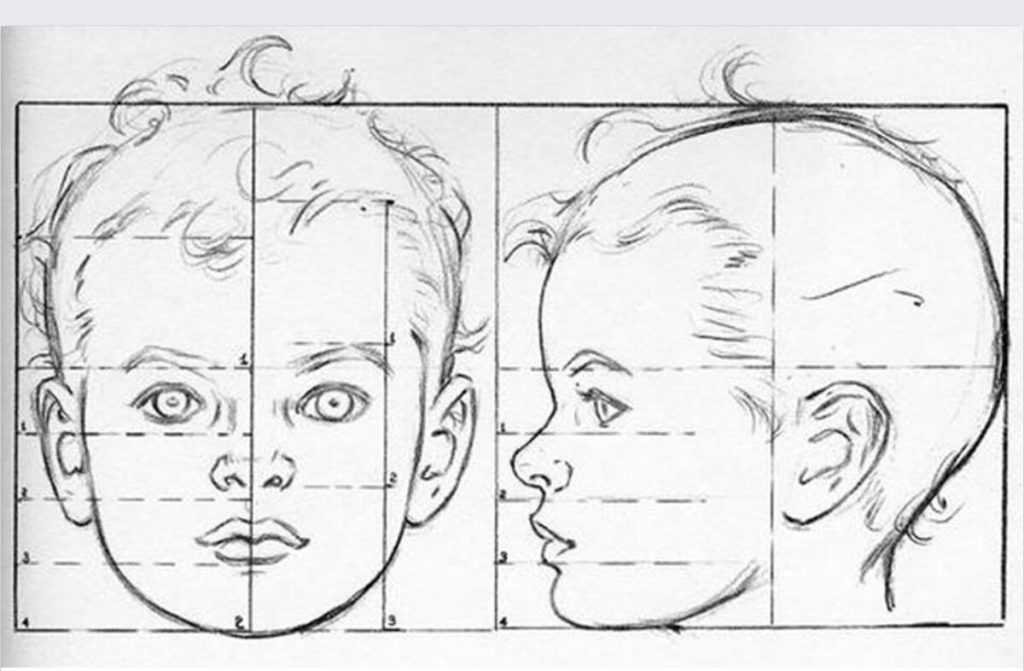 ![Пропорции лица ребенка при рисовании портрета схема]()