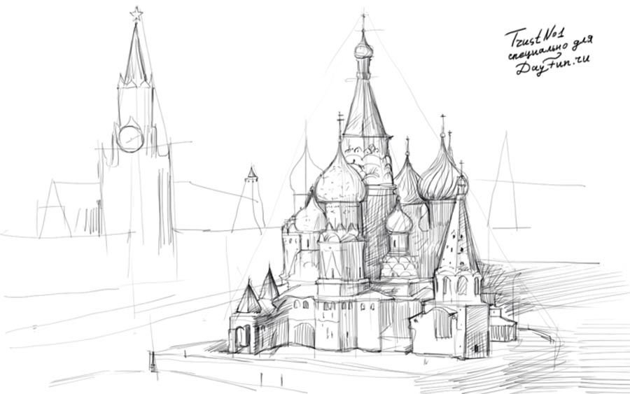 Нарисовать собор Василия Блаженного карандашом