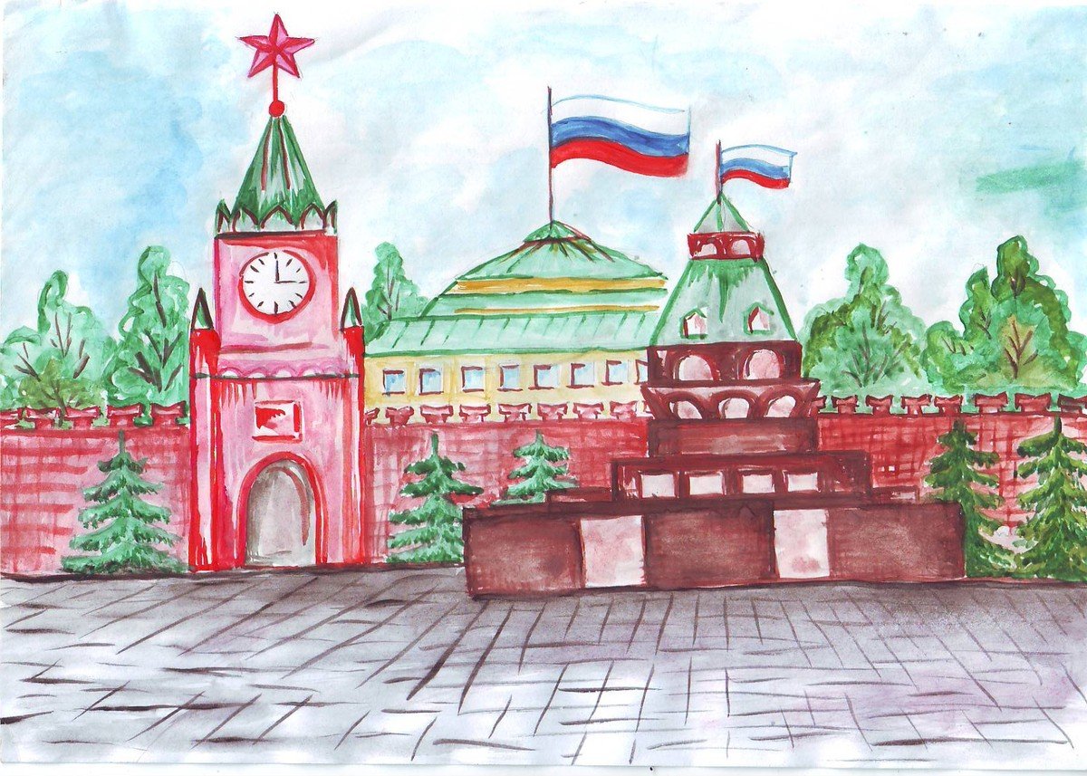 ![Красная площадь рисунок для детей]()