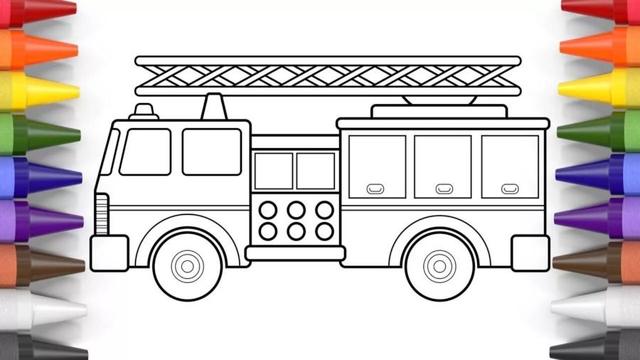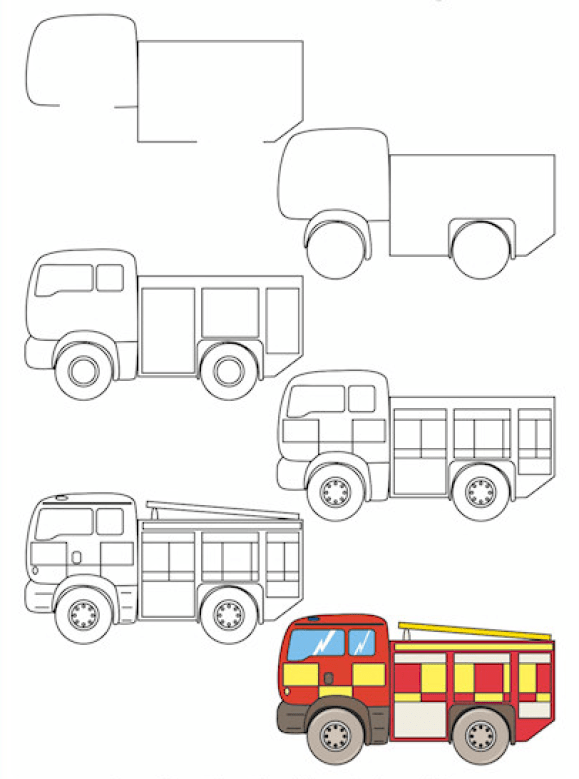 ![Как нарисовать пожарную машину поэтапно ребенку]()