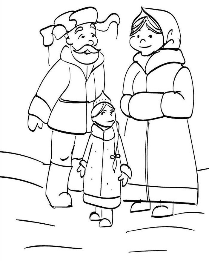![Рисунок Деда Мороза и Снегурочки для срисовки]()