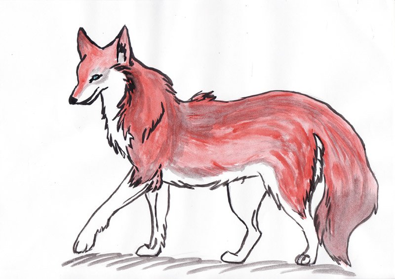 Красный волк, изображенный на этом рисунке карандашом, легко привлекает внимание своей яркостью и выразительностью. Он словно оживает на бумаге, передавая всю мощь и грацию этого величественного животного. Каждая деталь рисунка тщательно проработана - от мускулистой фигуры волка до его страшных клыков и живых глаз. Линии и тени создают объем и глубину, придают особую реалистичность этому произведению и оживляют его. Весь образ волка, окрашенного в яркий красный цвет, вызывает чувство силы, энергии и непокорности, что делает этот рисунок по-настоящему запоминающимся и впечатляющим.