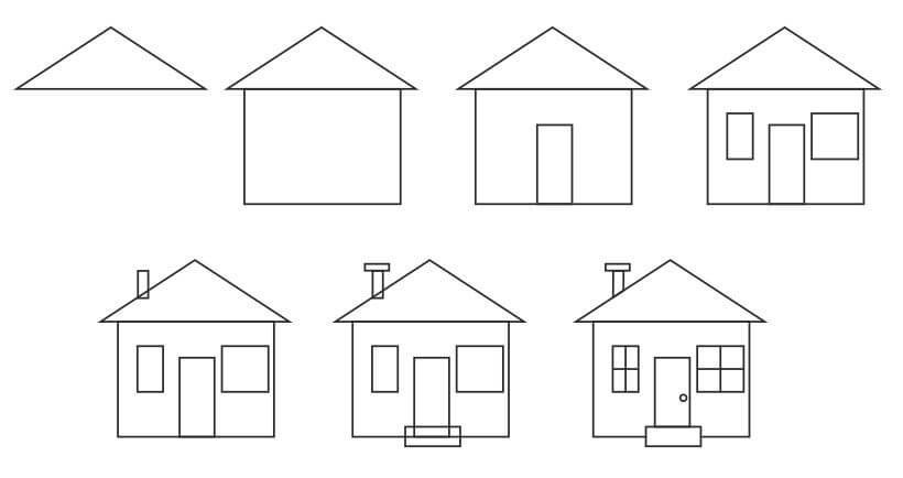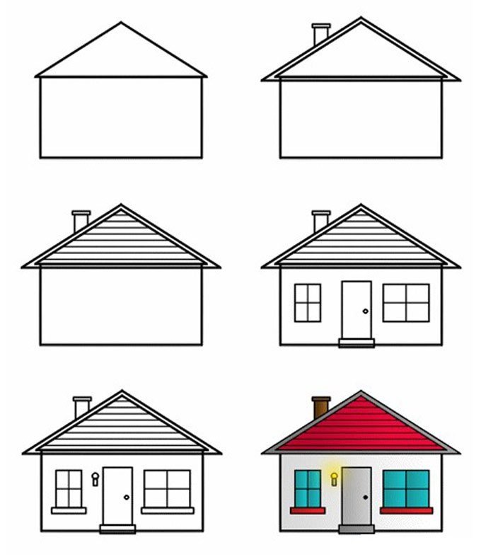 ![Поэтапное рисование дом]()