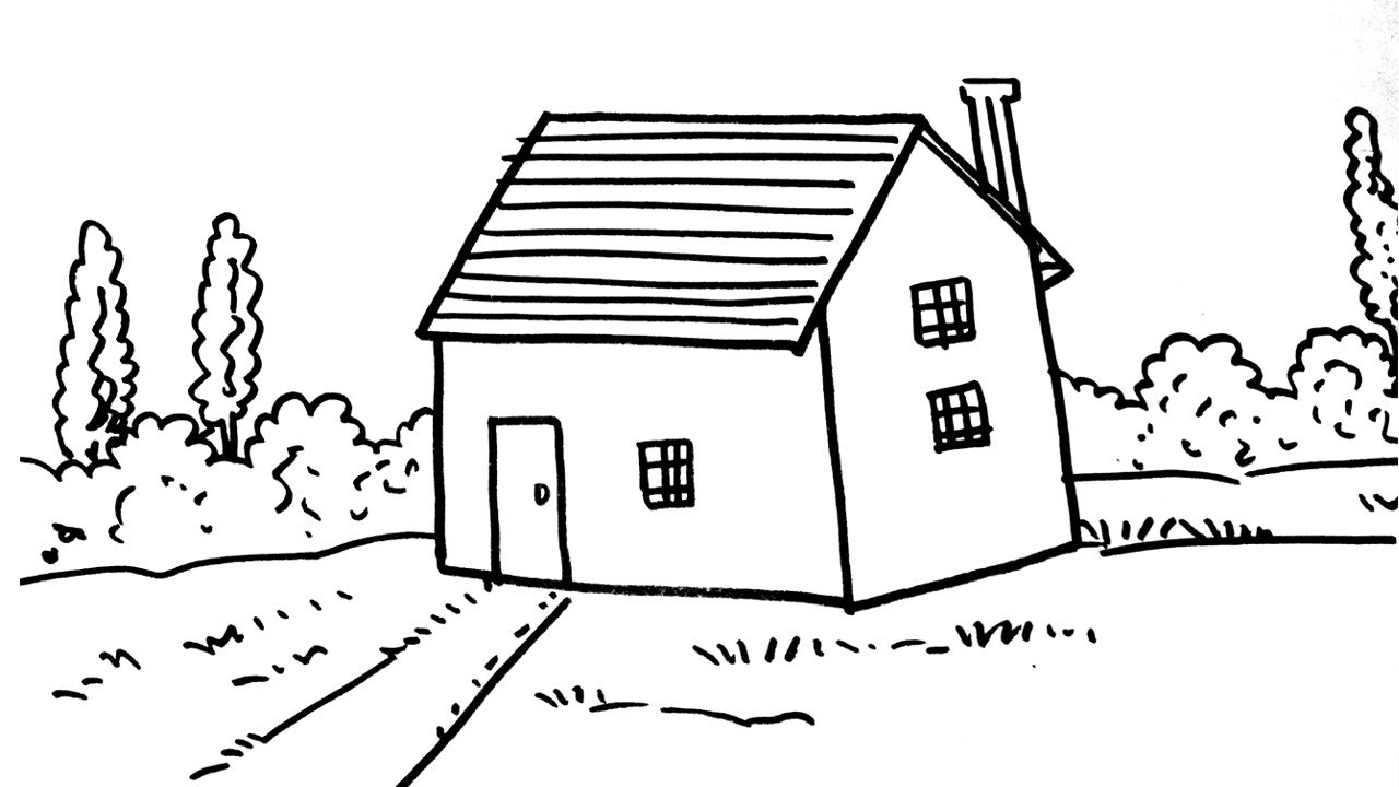 ![Домик простым карандашом]()