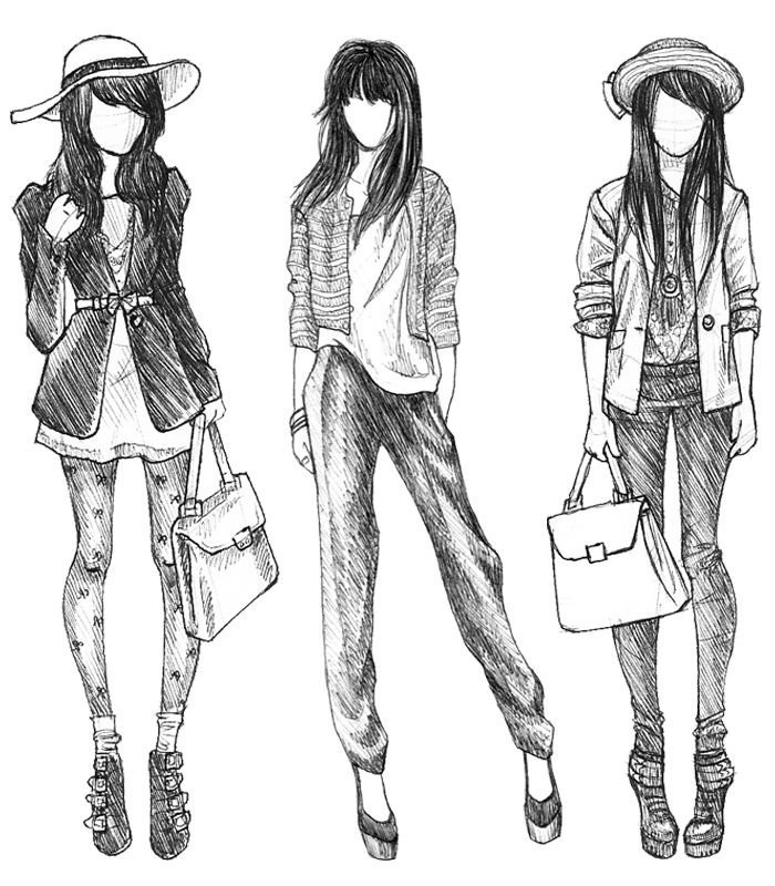 ![Эскизы модной одежды для начинающих]()