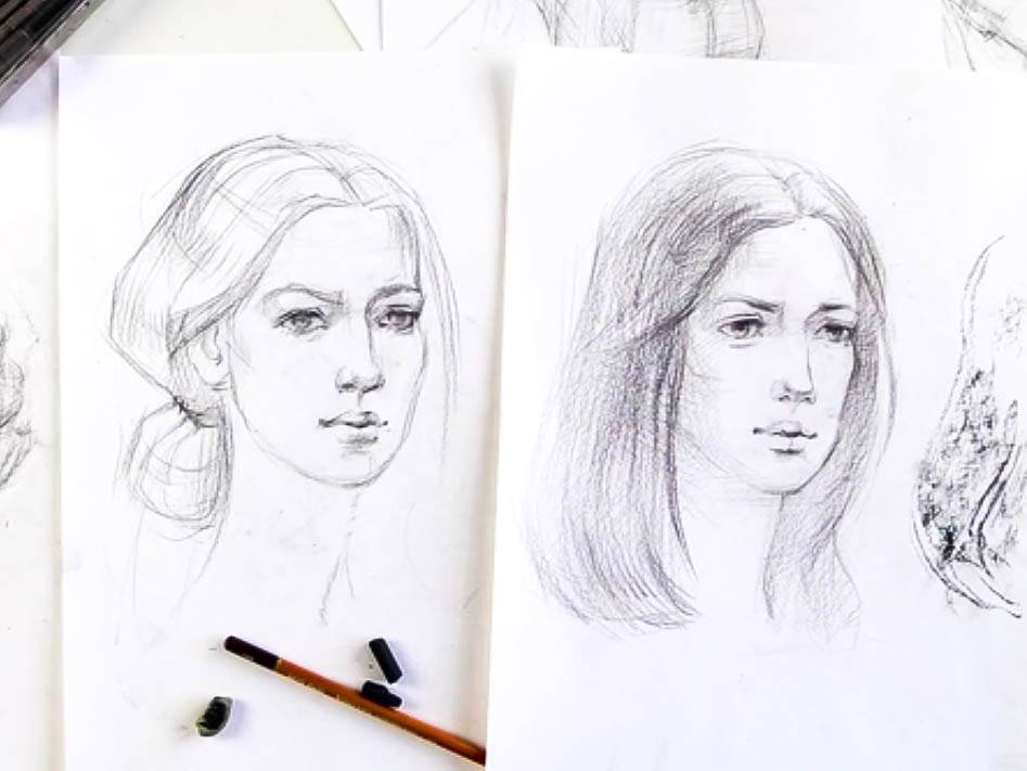![Зарисовки портретов карандашом]()
