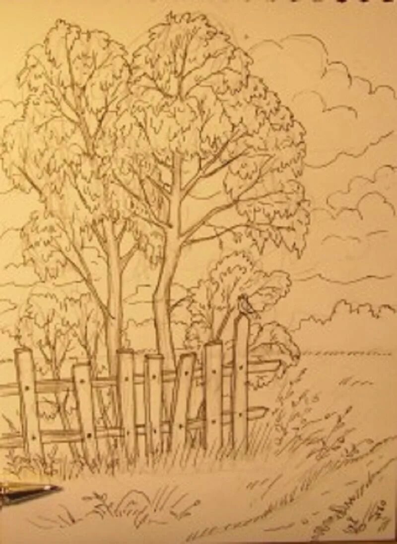 ![Весенние пейзажи карандашом легкие]()