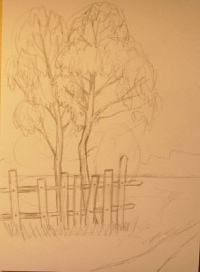 Осенний пейзаж карандашом для срисовки легкие