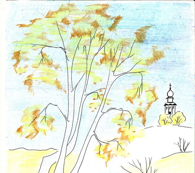 ![Осенний рисунок цветными карандашами]()