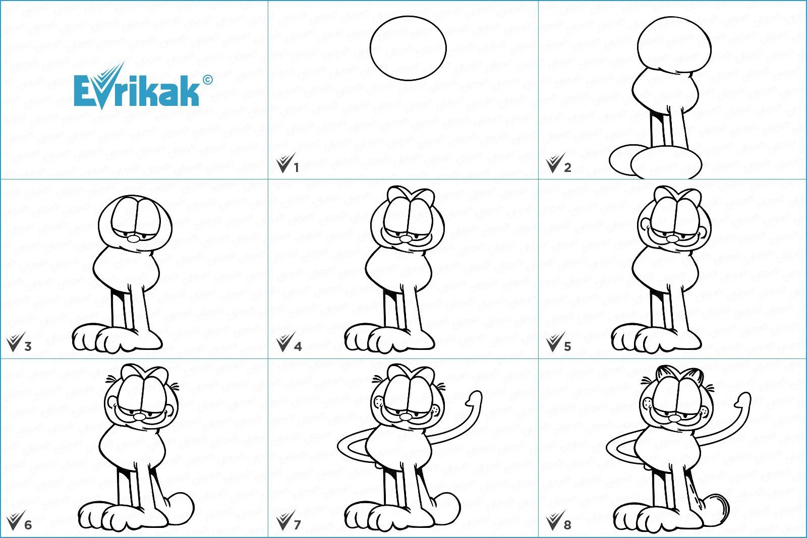 ![Гарфилд поэтапное рисование]()