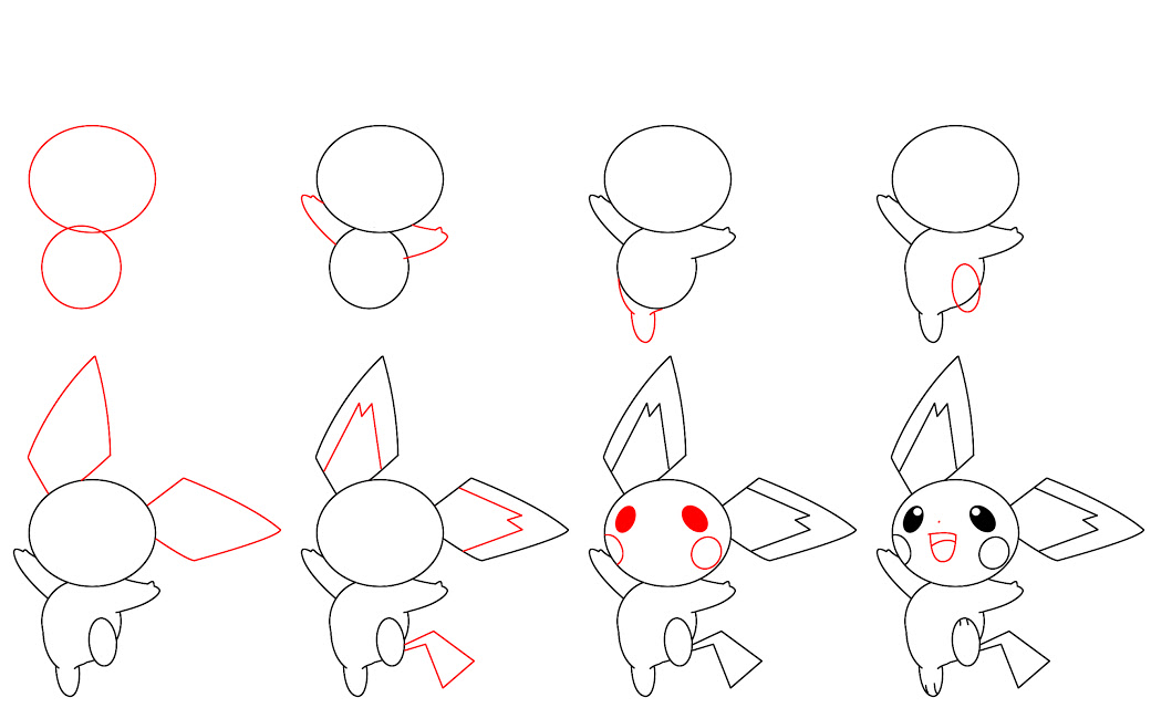 Поэтапные рисунки Пикачу