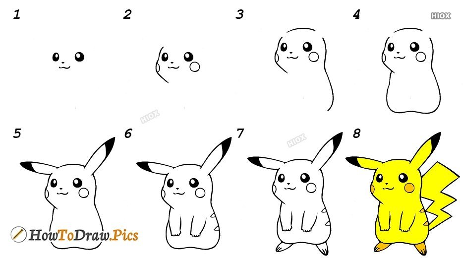 Пошаговые рисунки Пикачу