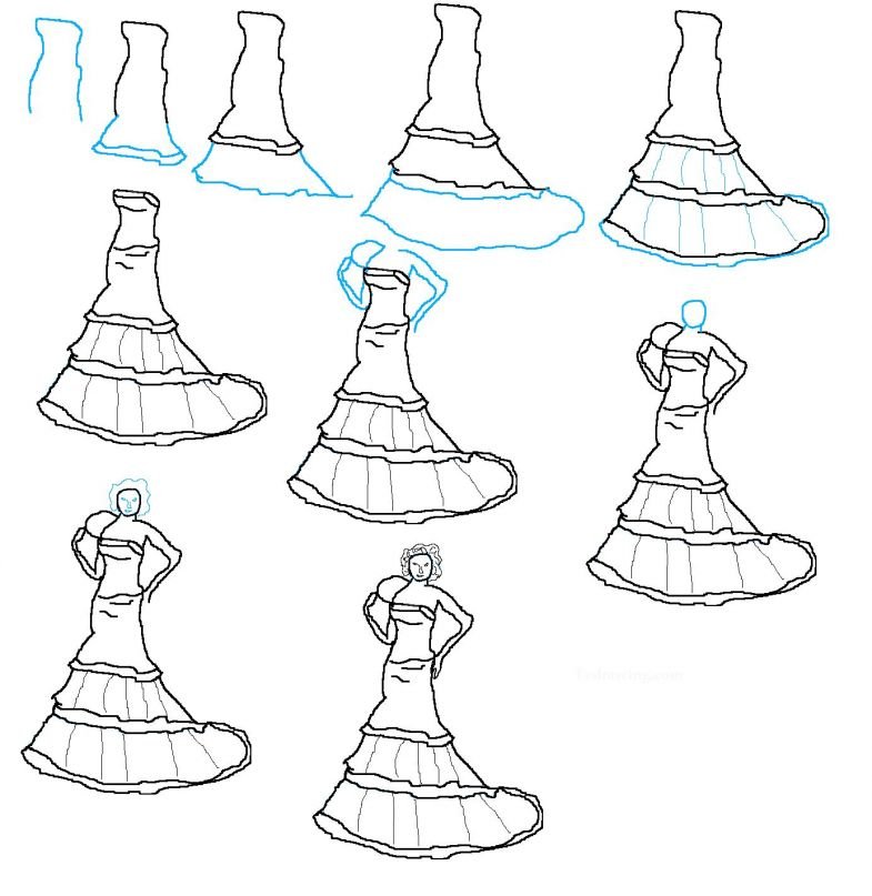 Поэтапнорисовние платьев