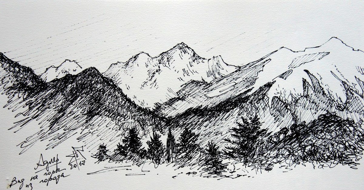 ![Горы Кавказа карандашом]()