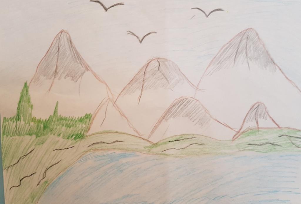 Горный пейзаж карандашом цветными