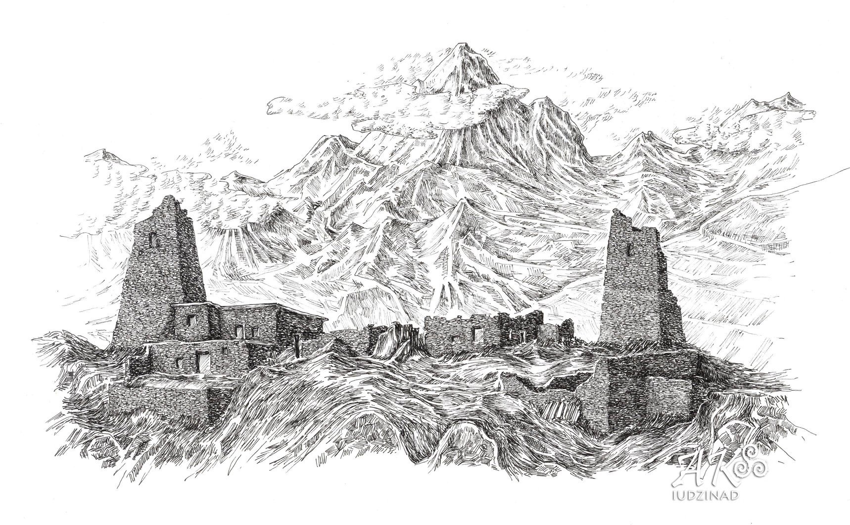 Горы Тянь Шань карандашом рисунок