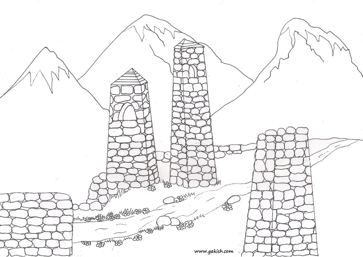 Горы Осетии рисование для детей