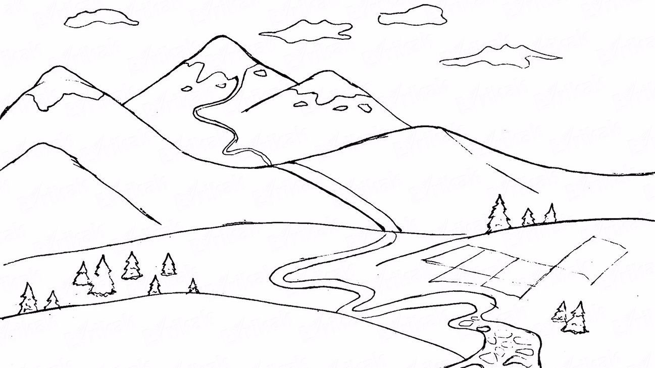 Горный пейзаж раскраска для детей