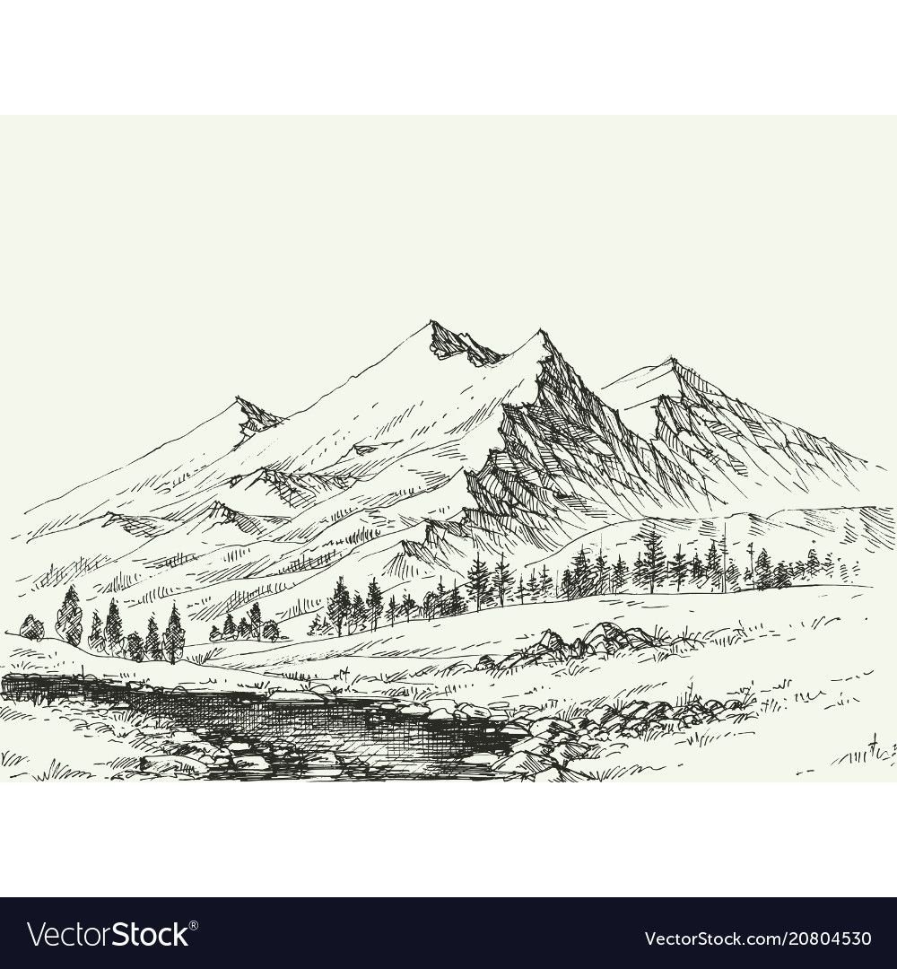 ![Набросок пейзаж горы]()