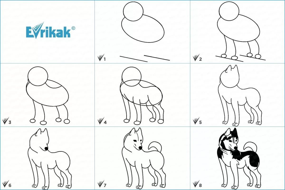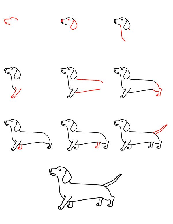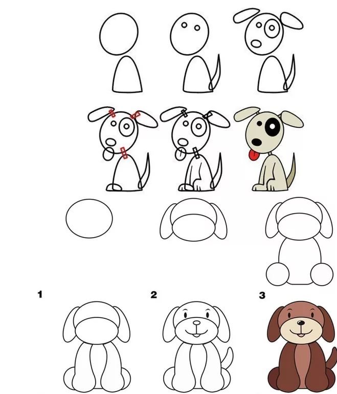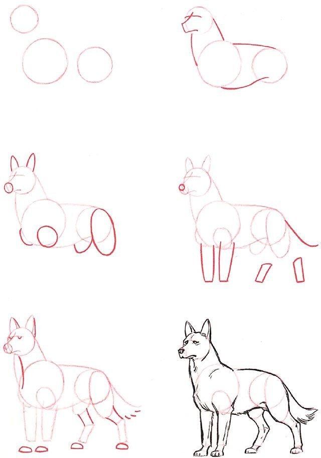 Схема рисования собаки простая