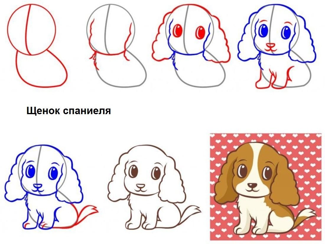 Рисование щенка поэтапно для детей