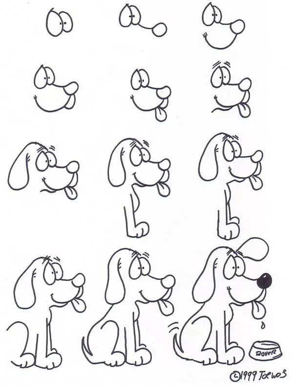 ![Рисунок собаки пошагово]()