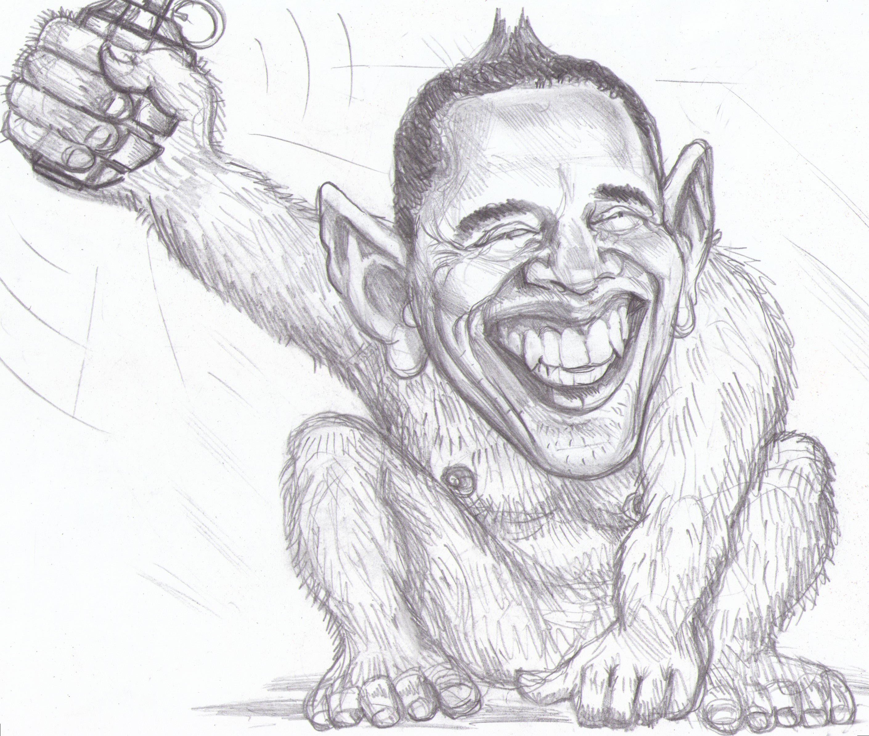 ![Шарж Обама карандашом]()