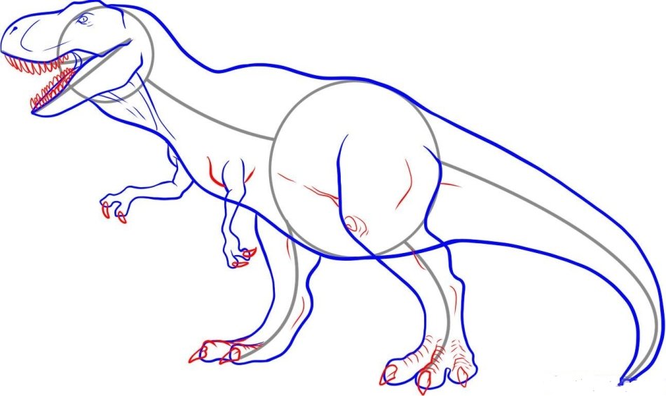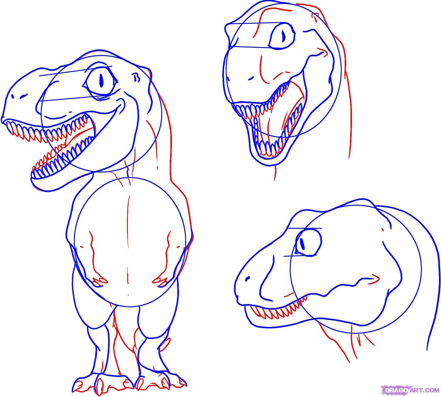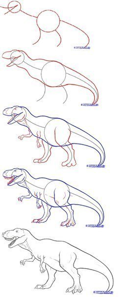 ![Динозавр рекс пошаговое рисование]()