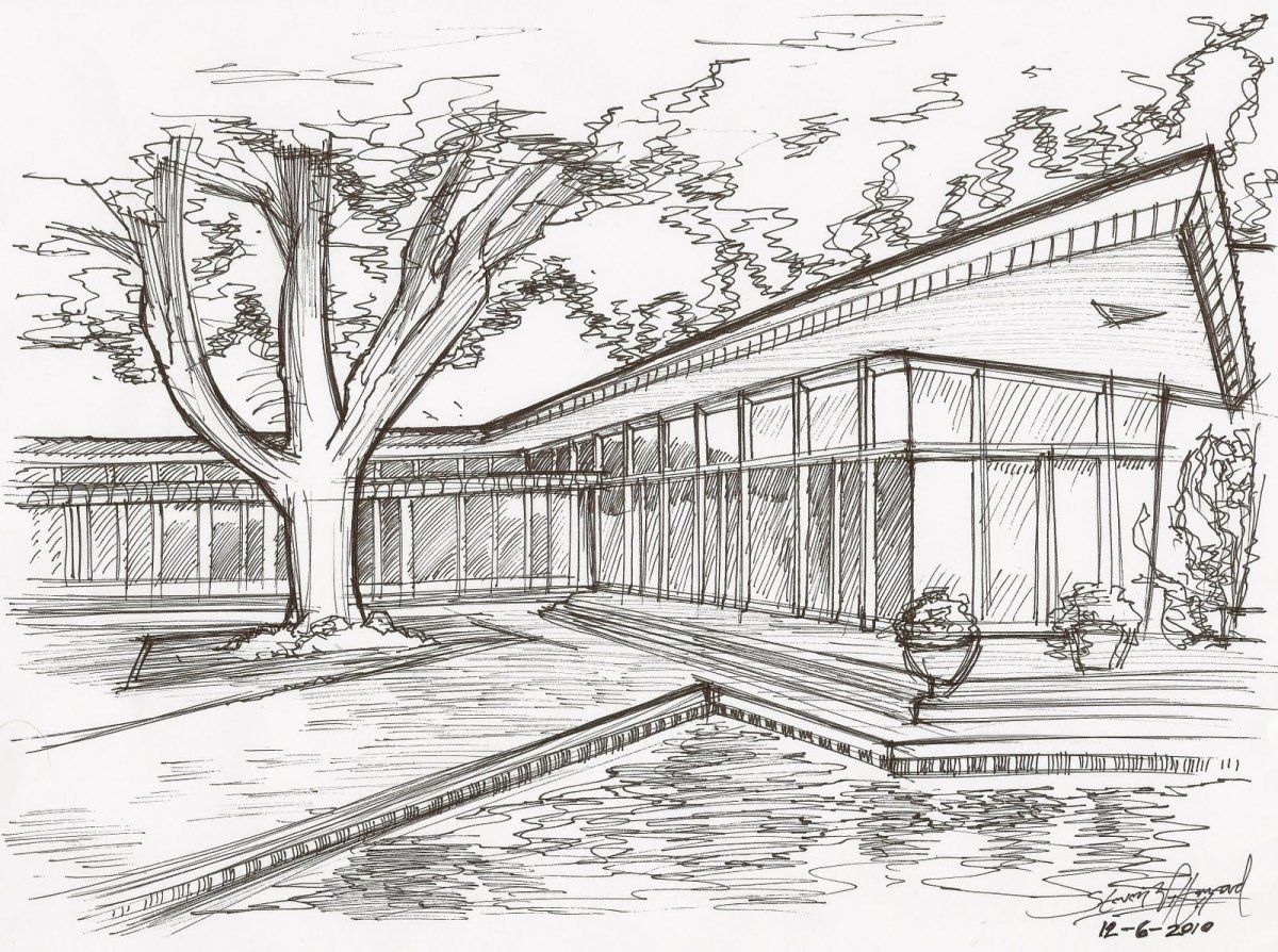 Дом над водопадом Фрэнк Ллойд Райт скетч