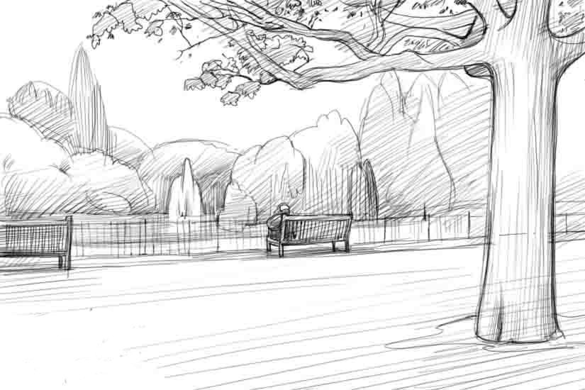 Пейзаж парка карандашом