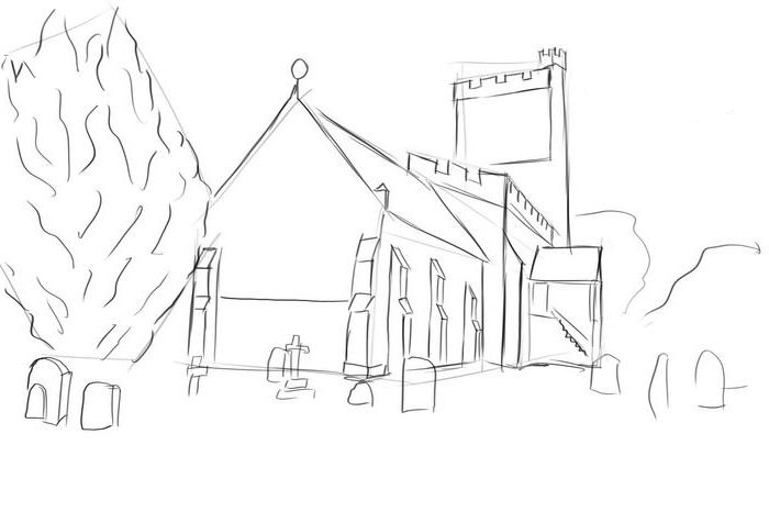 Пейзаж с архитектурой карандашом