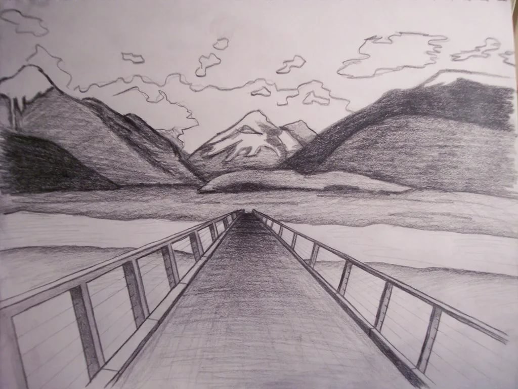 Пейзаж карандашом для срисовки