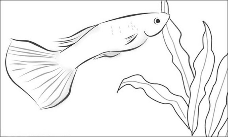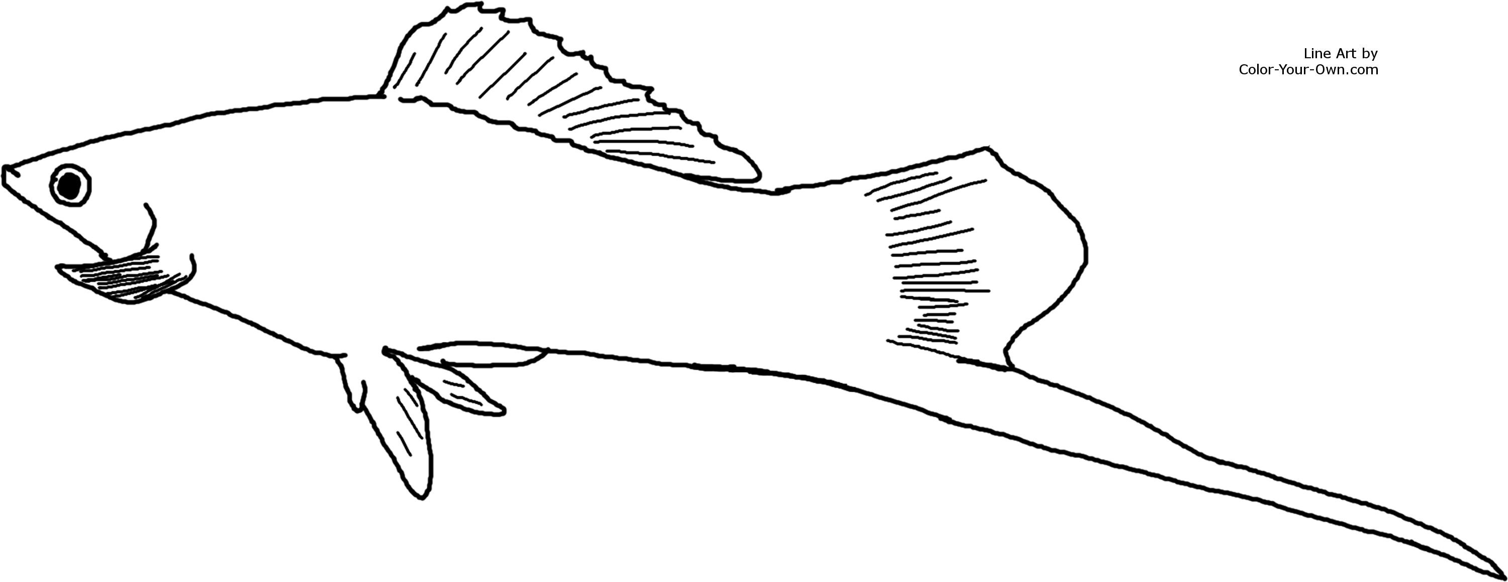 ![Аквариумные рыбки меченосец раскраска для детей]()