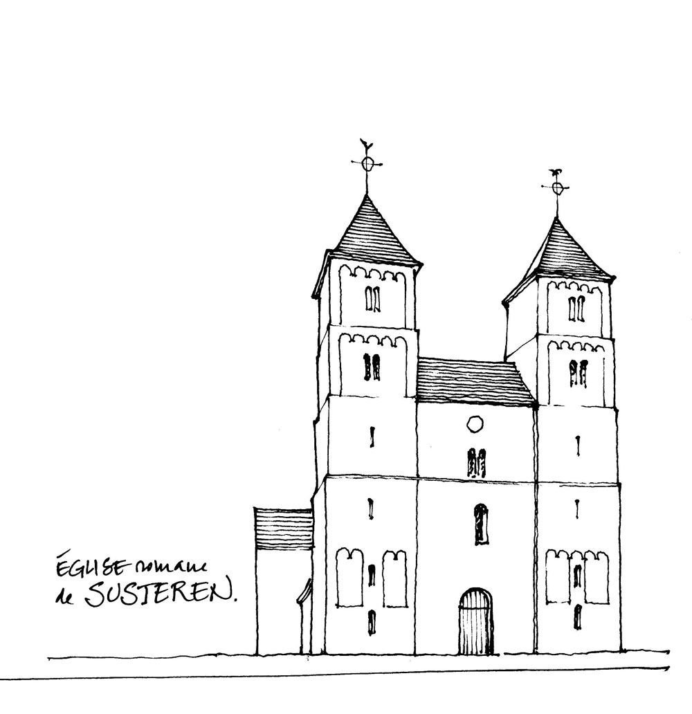 ![Зарисовка здания в романском стиле]()