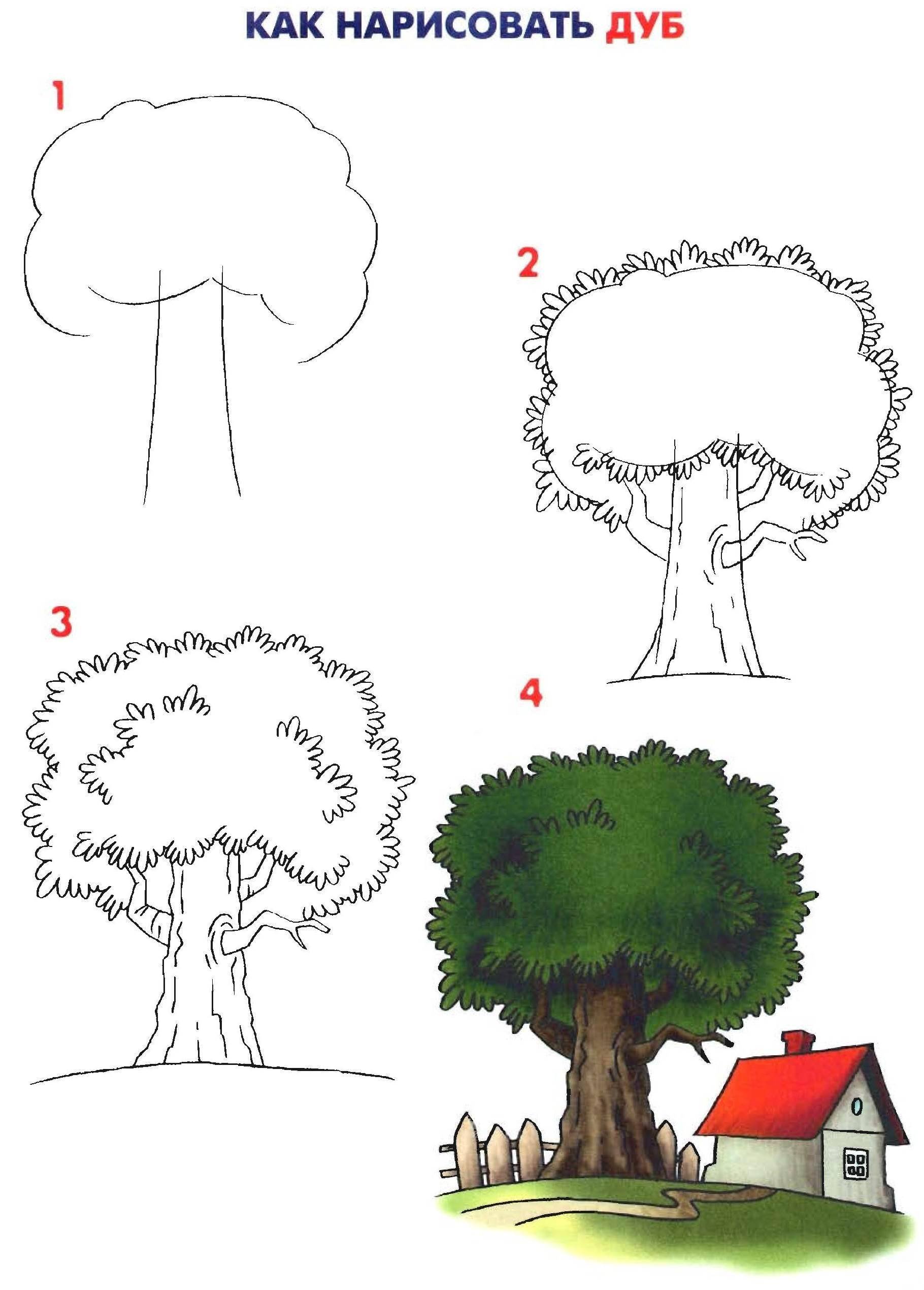 ![Дуб рисунок карандашом для детей]()