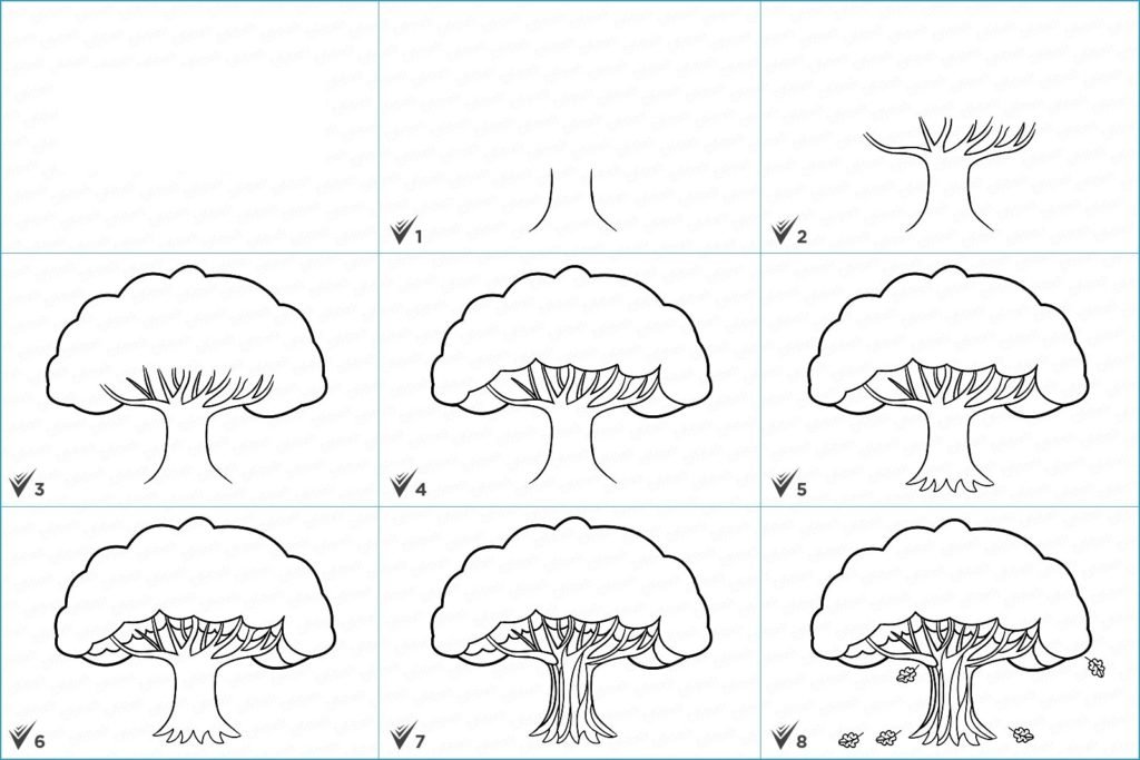 Как нарисовать дерево карандашом поэтапно для начинающих