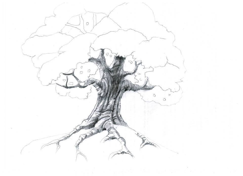 Дерево дуб рисунок карандашом для детей