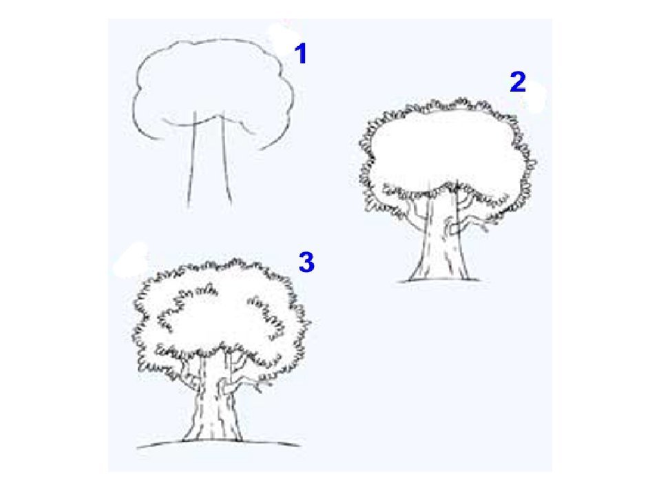 ![Поэтапное рисование дерева]()