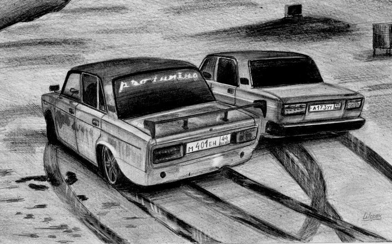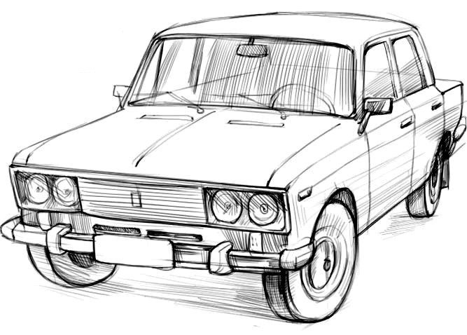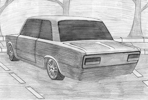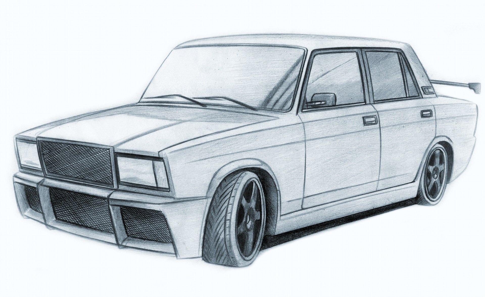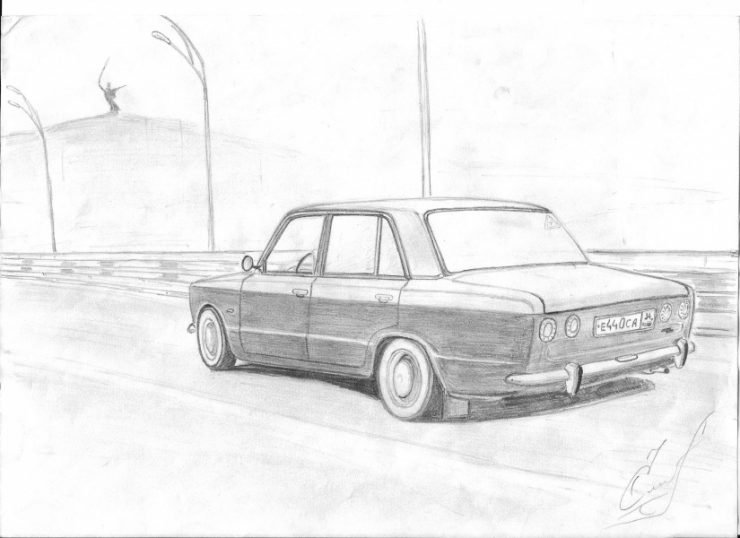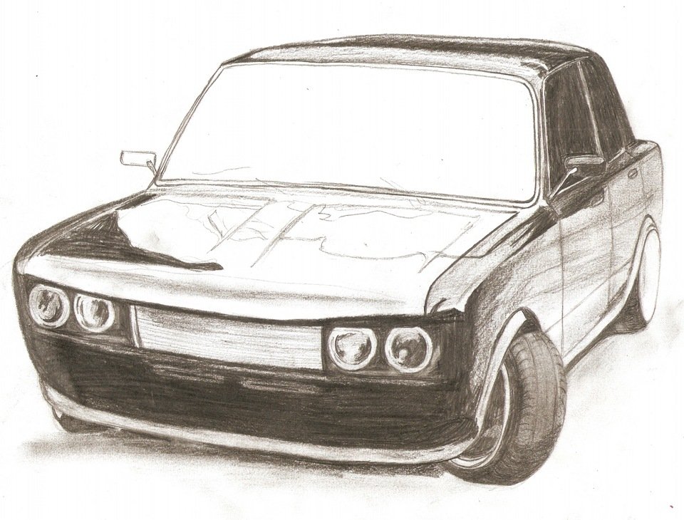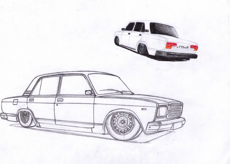 ![ВАЗ 2107 рисунок карандашом сбоку]()