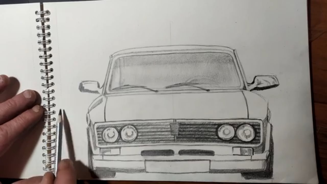 ![ВАЗ 2107 рисунок карандашом спереди]()