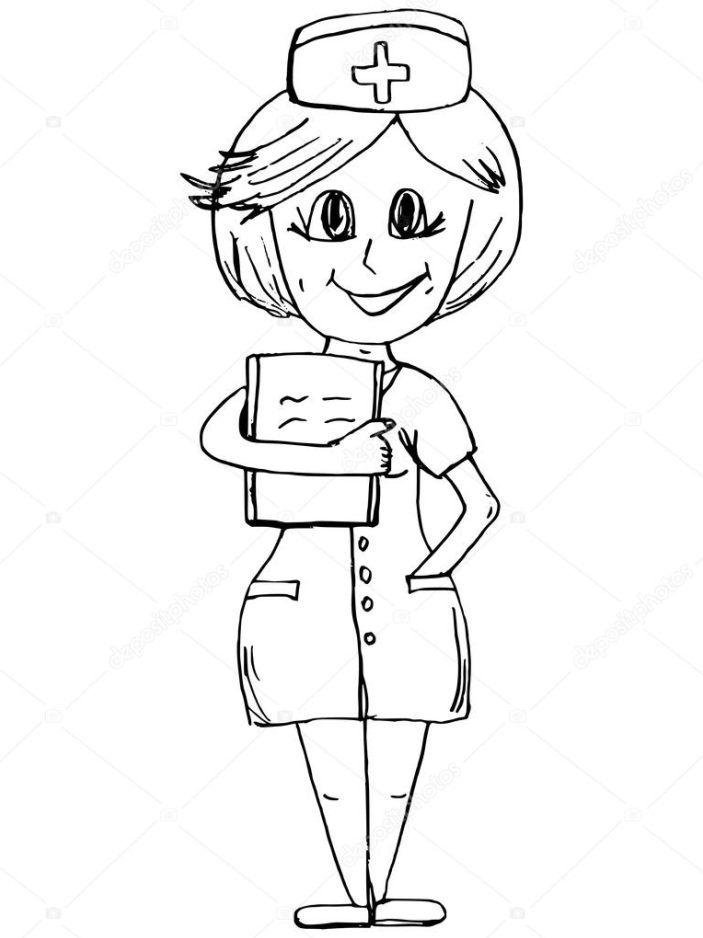 Раскраска медицинская сестра для детей